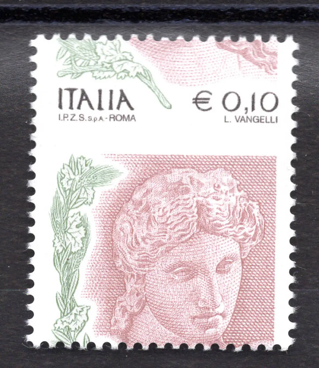 MNNH Vollgummi - Frauen in der Kunst Euro 0,10 Nr. 2724A schönes Exemplar mit stark vertikal verschobener Verzahnung Italien und Nennwert oben statt unten - Ungewöhnlich Cod. 782/20