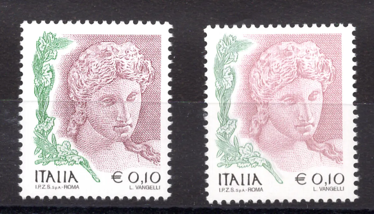 MNH - Frauen in der Kunst Euro 0,10 zwei verschiedene Druckfarben - Nette Kuriosität für den Ausgabespezialisten Cod. 287/WEB