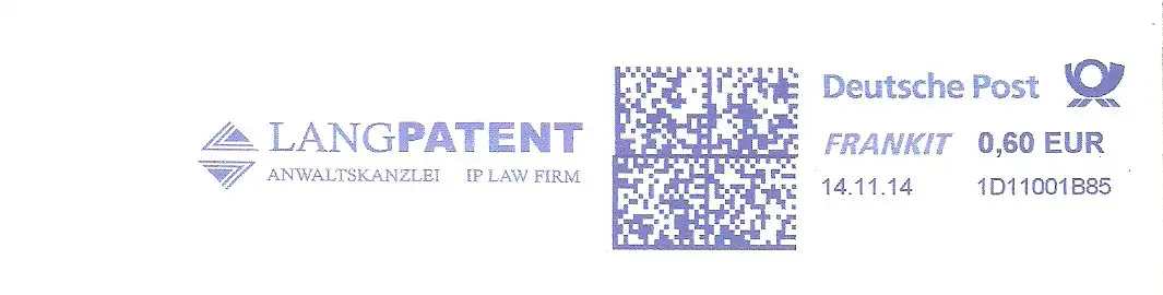 Freistempel 1D11001B85 - LANGPATENT Anwaltskanzlei - IP Law Firm (#2438)