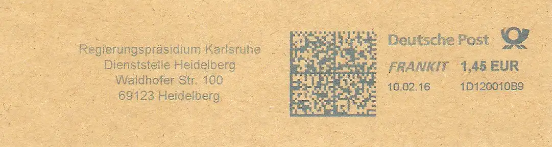Freistempel 1D120010B9 Heidelberg - Regierungspräsidium Karlsruhe - Dienststelle Heidelberg (#2623)
