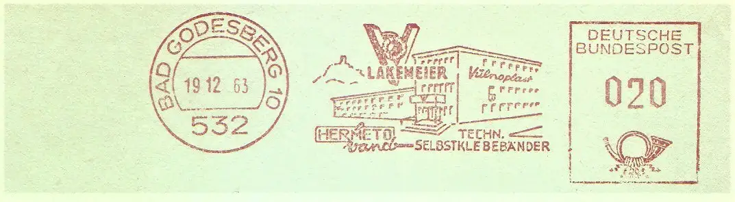 Freistempel Bad Godesberg - LAKEMEIER Vulnoplast - Hermeto - Techn. Selbstklebebänder (Abb. Firmengebäude) (#2744)
