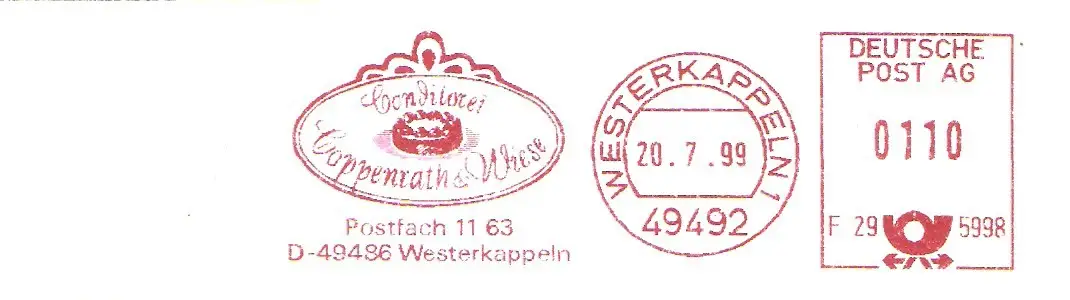Freistempel F29 5998 Westerkappeln - Conditorei Coppenrath & Wiese (Abb. Torte) (#2251)