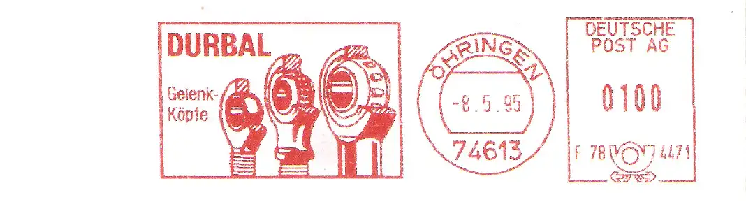 Freistempel F78 4471 Öhringen - DURBAL (Abb. Gelenk-Köpfe) (#2242)
