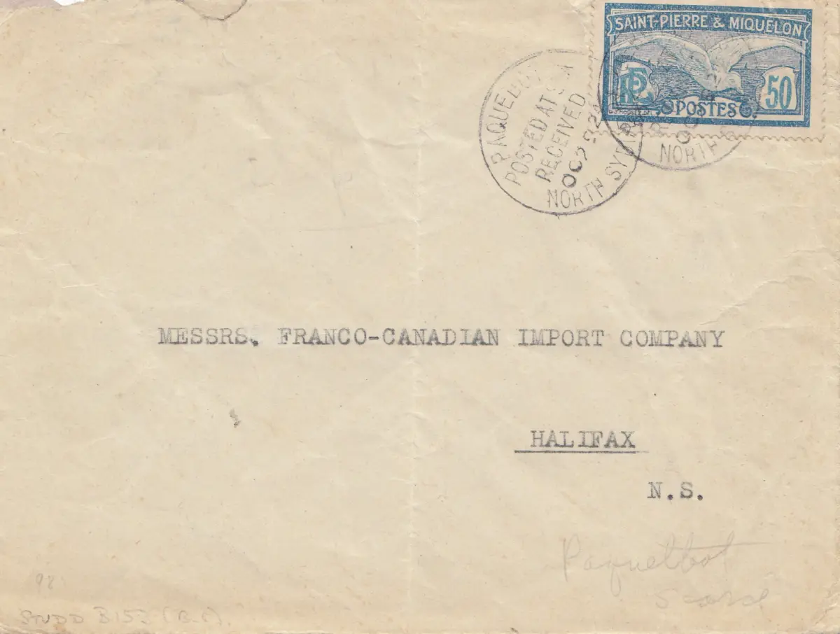 French colonies: Saint-Pierre to Hailvax, Paquebot received Sydney