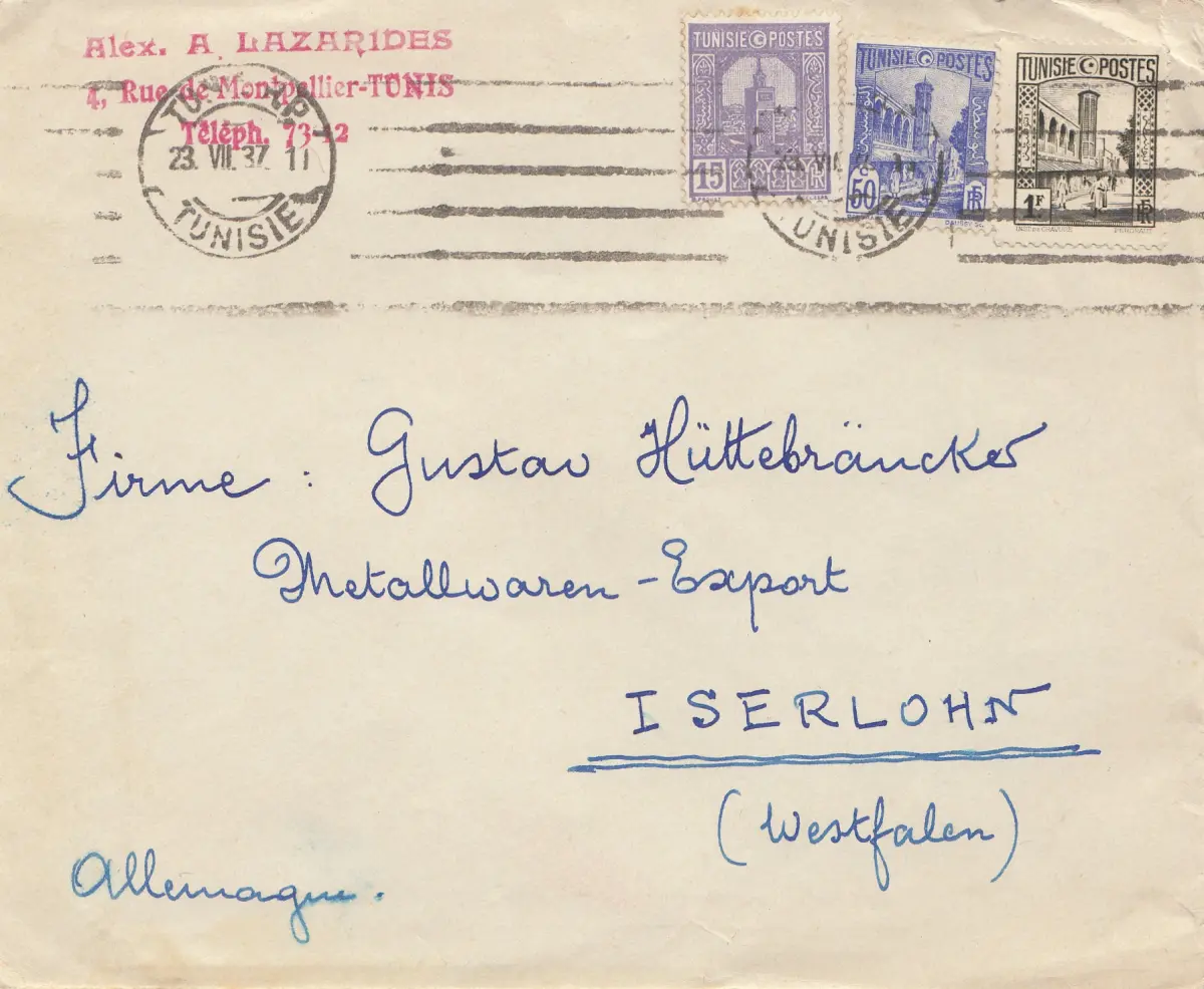 French colonies Tunisie 1937: from Tunis to Iserlohn