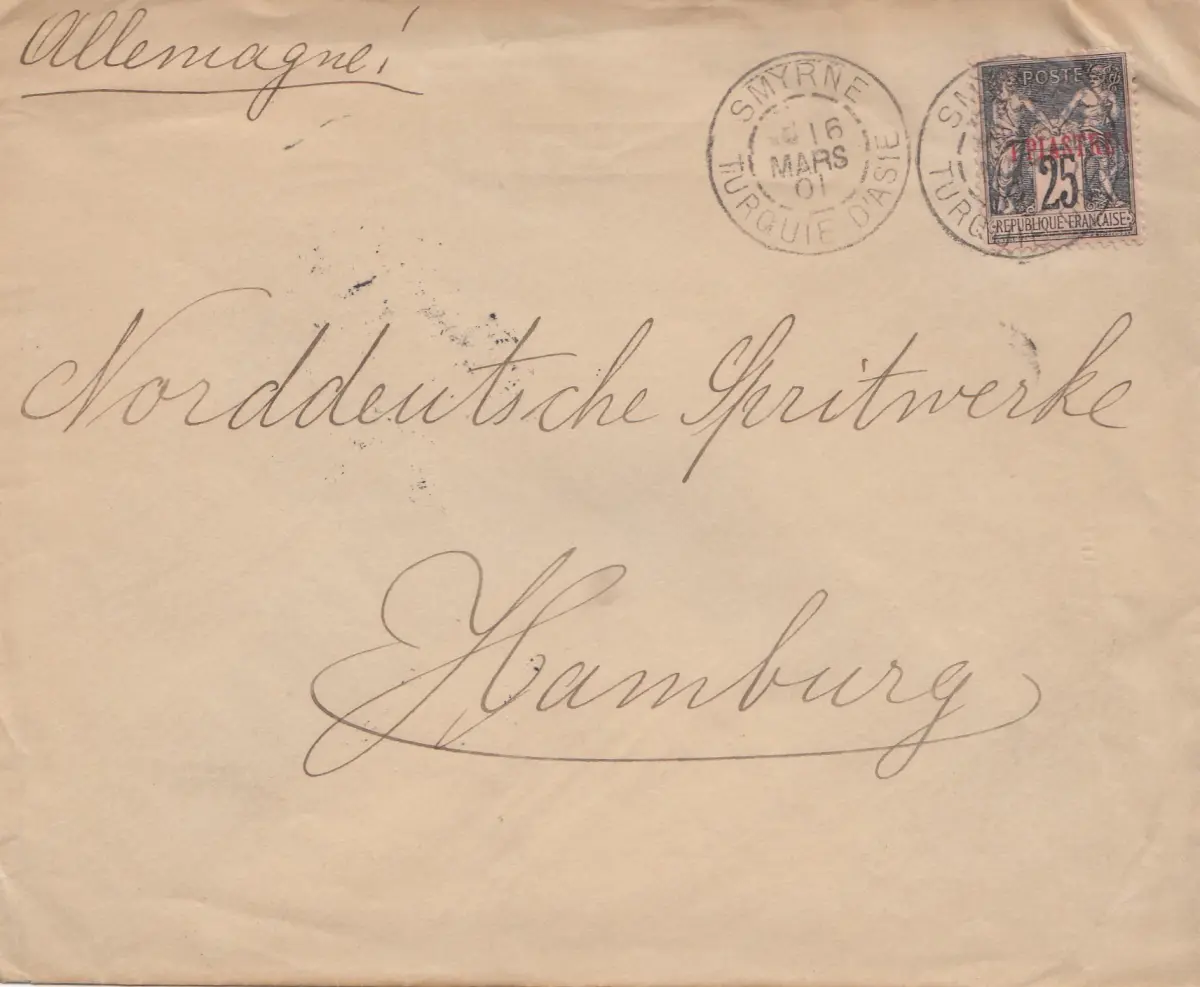 French colonies: Turk d'asie 1901: Smyrne to Hamburg