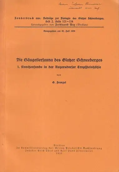 Frenzel, G: Die Säugetierfauna des Glatzer Schneeberges. 1. Knochenfunde in der Reyersdorfer Tropfsteinhöhle / Die Winterfauna des Glatzer Schneeberges. 1. Ein Massenauftreten von "Schneeflötzen" am Glatzer Schneeberg. (Sonderdrucke aus: Beiträge zur B