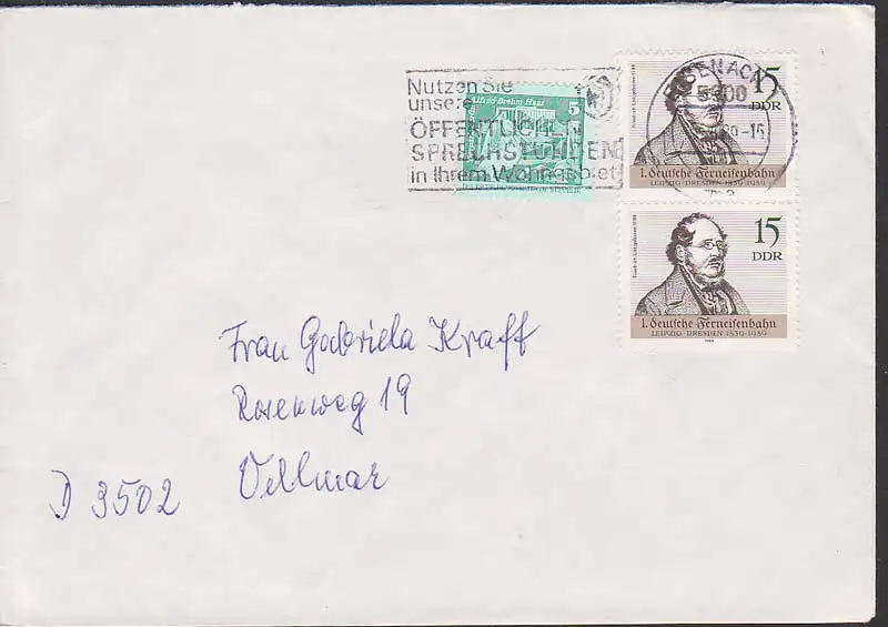 Friedrich List 15 Pfg. im senkr. Paar (3238) auf Auslandsbrief MWSt
