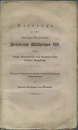 Friedrich Wilhelm III. - Minutoli, General-Lieutenant von: Beiträge zu einer künftigen Biographie Friedrich Wilhelms III. so wie einiger Staatsdiener und Beamten seiner nächsten Umgebung. Aus eigner Erfahrung und mündlich verbürgten Mittheilungen zusammen