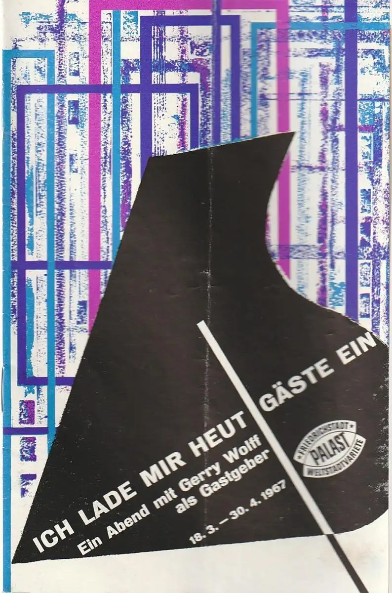 Ein Abend mit Gerry Wolff als Gastgeber. Regie: Wolfgang E. Struck. Musikalische Leitung: Rolf Schellenberg.Kapellmeister: Robert Ebeling. Bühne und Kostüme:Wolf Leder. Ballettmeisterin: Gisela Walther. Regieassistenz: Detlef Kruber. Sängerinnen, Sänger und Schauspieler: Christa Keller, Donna Hightower, Bob Benny, Jimmy Thomas, u. a. Artisten: 2 Trux, Die Mortales, Adam & Jerzy, Duo Pappert, u. a. Damen und Herren des Balletts - Theaterprogramm, Opernprogramm, Ballettprogramm, Musicalprogramm, Konzertprogramm, Theatermemorabilia, Programmhefte Sammlung, deutsche Theatergeschichte.