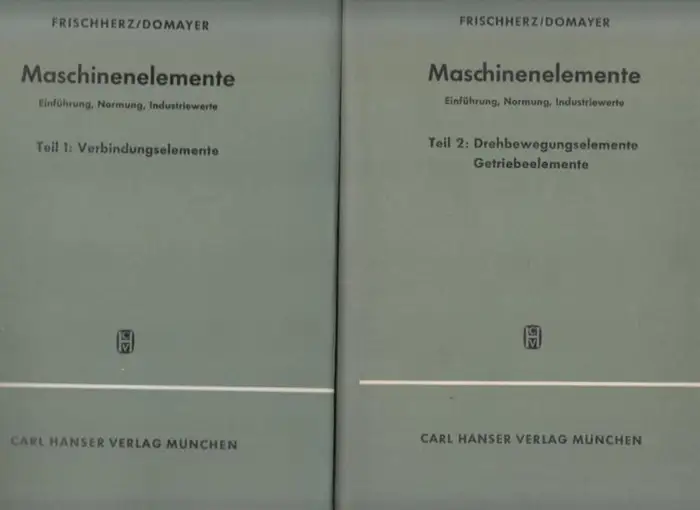 Frischherz, Adolf - Rudolf Domayer: Maschinenelemente. 2 Teile komplett. Einführung, Normung, Industriewerte. Teil 1: Verbindungselemente. Teil 2: Drehbewegungselemente, Getriebeelemente.