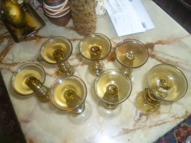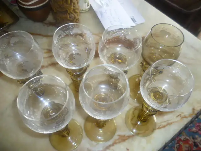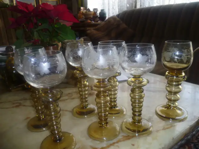 Fritz Heckert 6+1Weinrömer Jugendstil Gläser Römerglas Weinglas um 1900