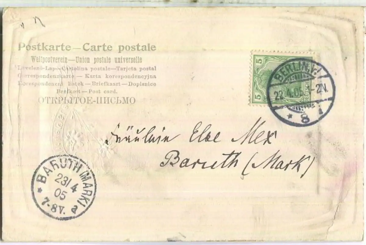 Fröhliche Ostern - Samt Hase aufgeklebt - geprägt (E99635) gel. 1905