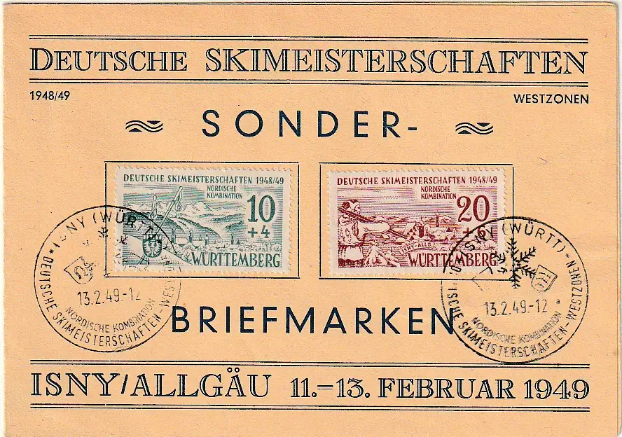 Frz. Zone Klappkarte von der Skimeisterschaft in Isny