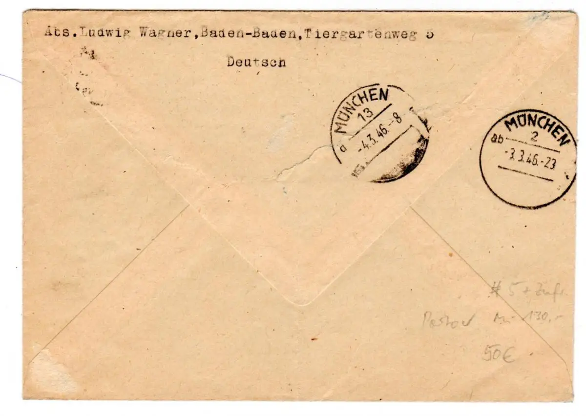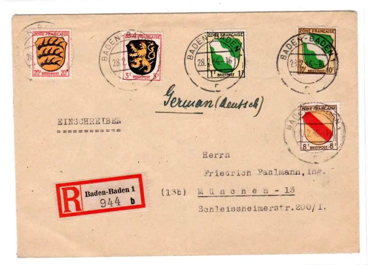 Frz. Zone, R-Brief mit u.a. Nr. 5