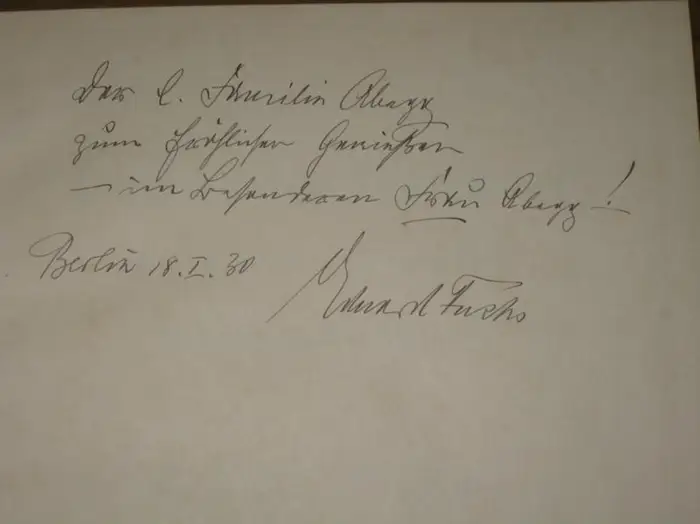 Freie Beschreibung: Gut lesbare Zueignung des Historikers in Tinte, der eher selten Handschriftliches hinterließ