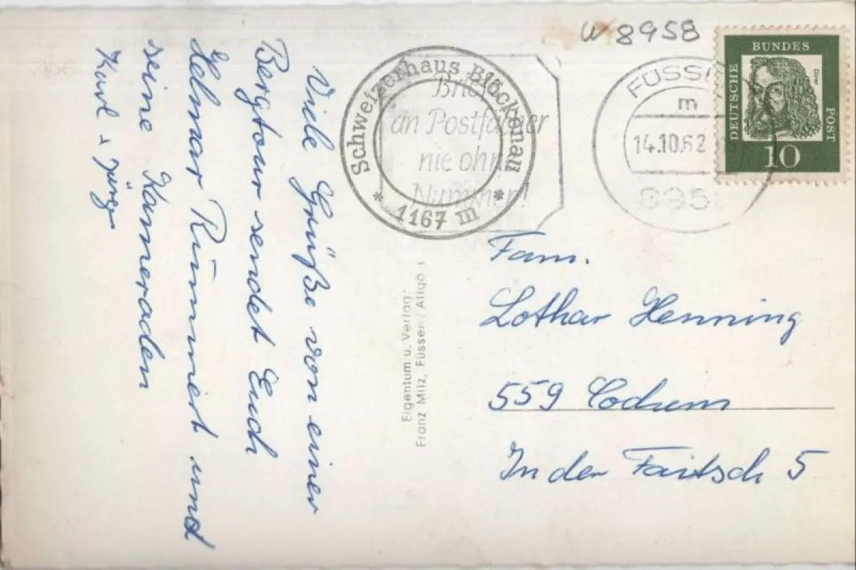 Postleitzahl:87629 (neu) / W 8958 (alt)
