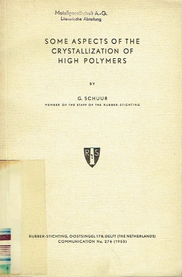 G. Schuur, Member of the staff of the Rubber-Stichting: Some Aspects of the Crystallization of High Polymers.