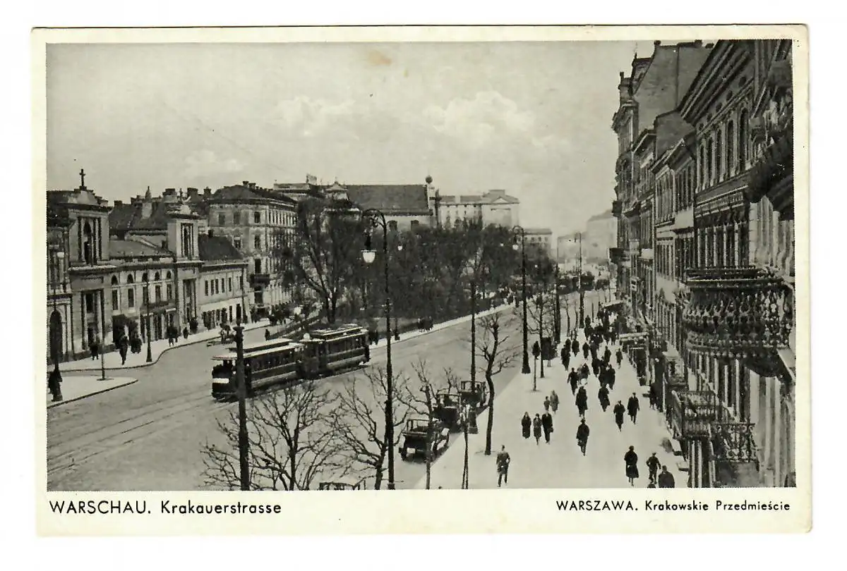 GG: AK Varsovie - Krakuer Strasse, avec tramway, 1941, Feldpost