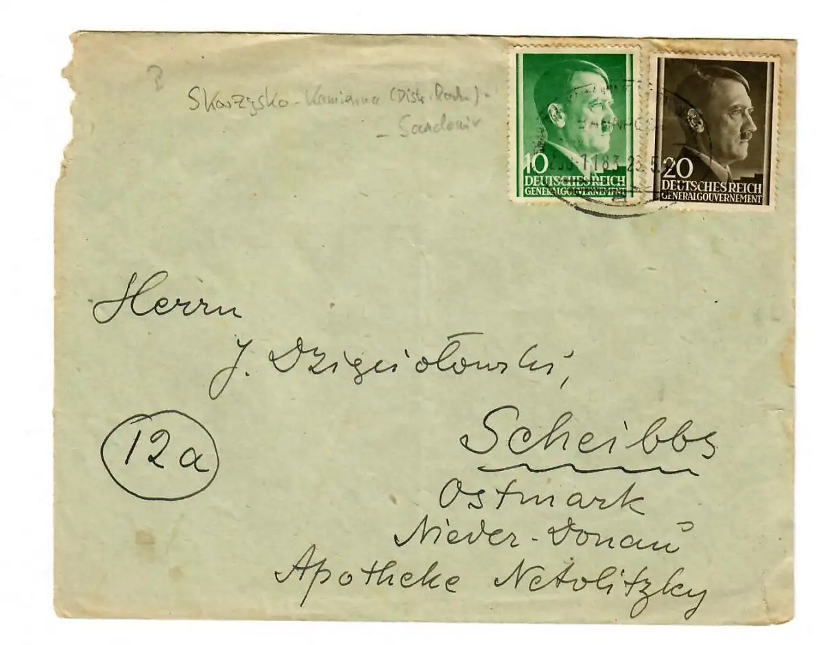 Tampon de la poste GG: Skarcysko-Kamienna (Distr. Radom) - Sandomir, train 1183
