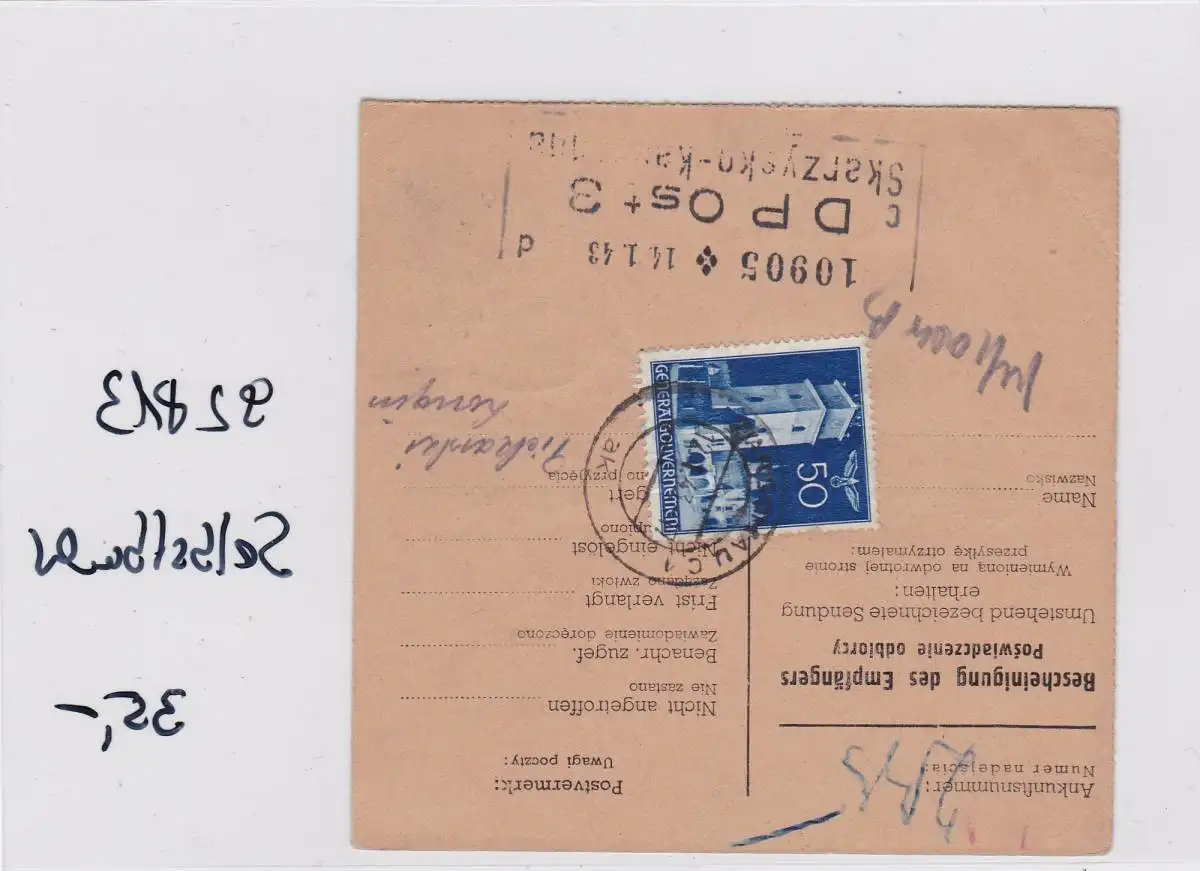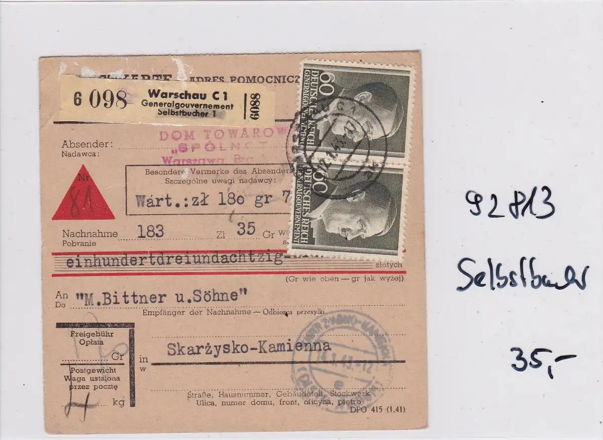 GG: Carte de colis Auto-bookeur en formulaire, rarement de Varsovie à Scarkarcysko