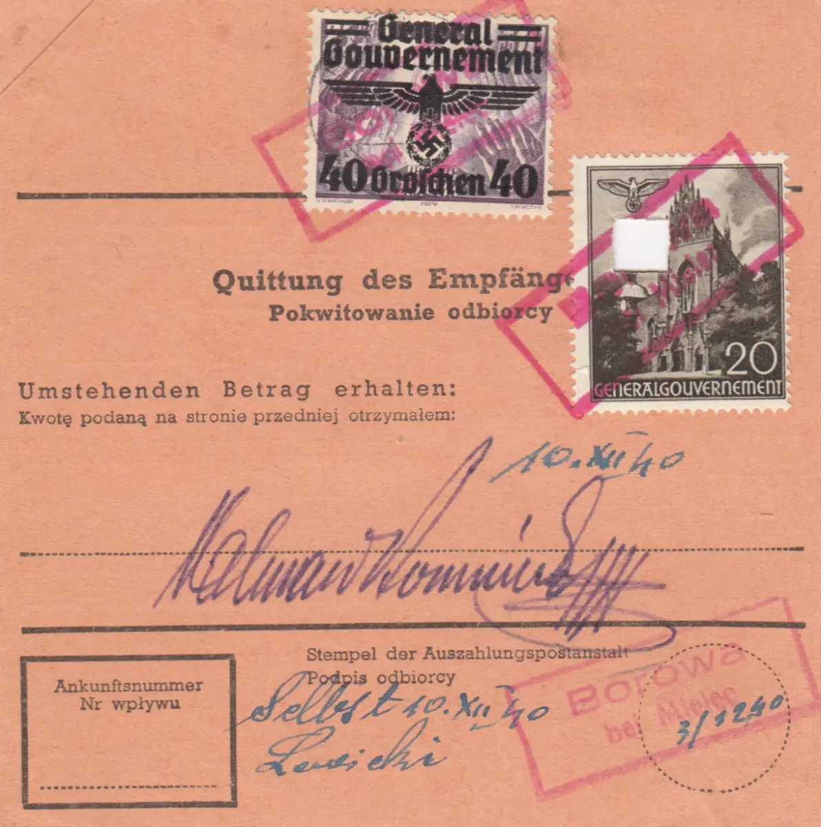 GG Commande postale Mielec-Borowa, DP Est 1, MiF, porto-fairable, agence postale