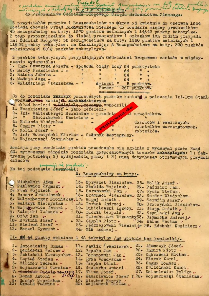 Les documents de la GG, etc. Les collections de documents du G.G., de l'administration, des institutions, et des particuliers, sont dissous. Après que les musées ne se sont pas intéressés à ce stock, il est maintenant distribué. La vie est documentée dans le Gouvernment général des Allemands et Polonais, le travail des services allemands et polonais, les cartes des entreprises, l 'offre aux résidents, la culture, nourriture, logement, ... Les recueils suivants sont bientôt vendus par les banques de données et les maisons de presse de banques, environ 15 grands ordres avec des documents dans tous les domaines de vie, d . et de Pologne, ainsi que dans les bureaux, cartes du GR. etc..., quelques informations très intéressantes et très rares, avec les personnes.