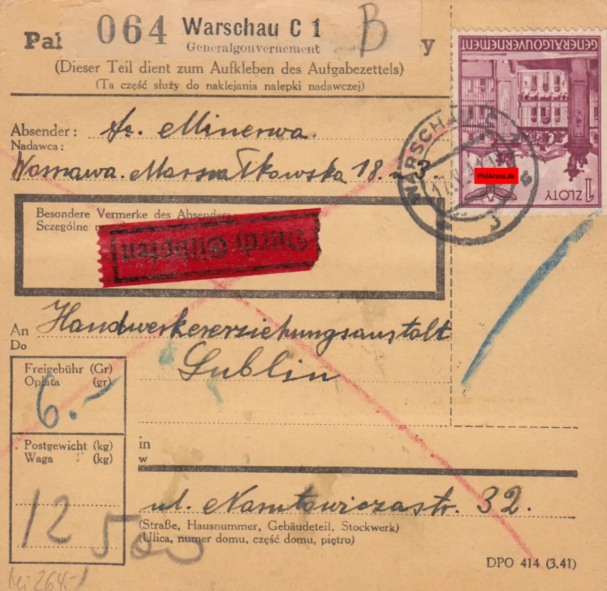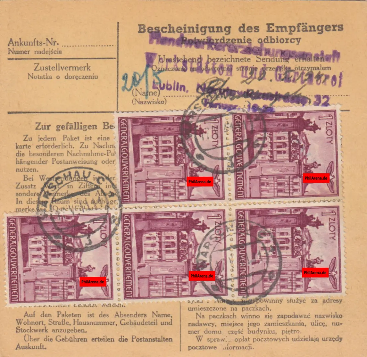 GG: carte de colis intérieur Varsovie-Lublin, éilbots, très rare 1 Zloty MeF