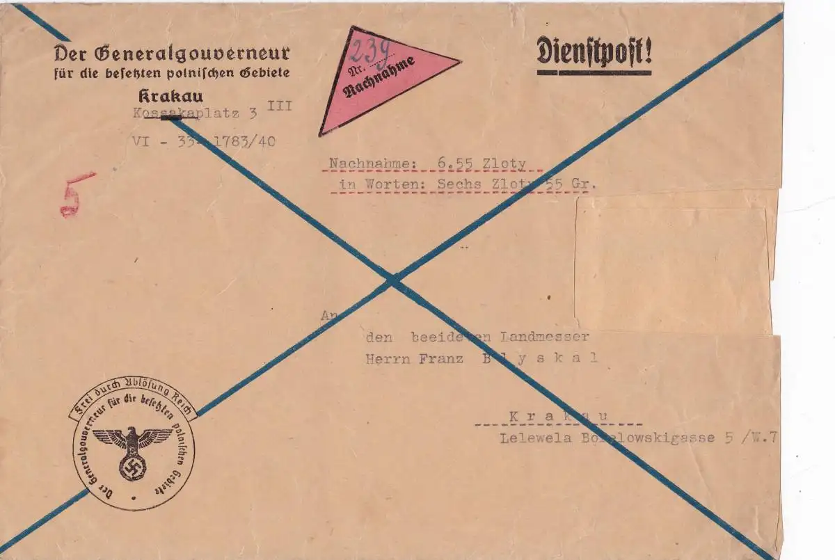 GG: Lettre de réduction Gouverneur général à Cracovie couteau, malheureusement marques loin