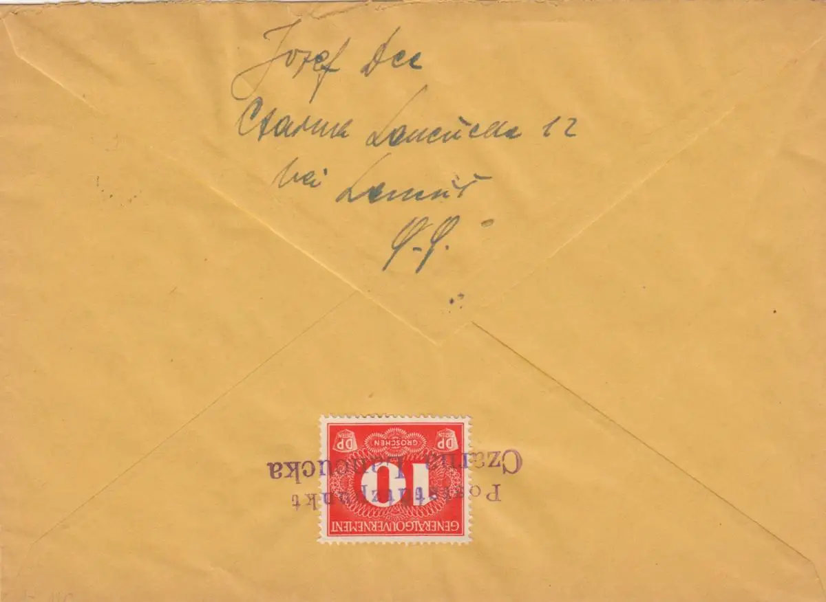 GG: Base postale chez Lancut à Lublin, porto-juste dévalorisé Z1 arrière
