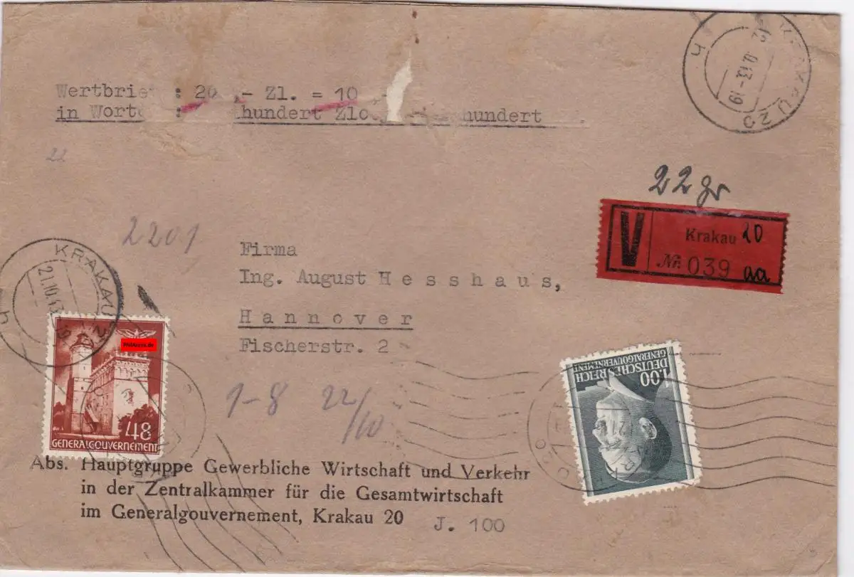 GG: Lettre de valeur Cracovie 20, groupe principal économie, grands sceaux