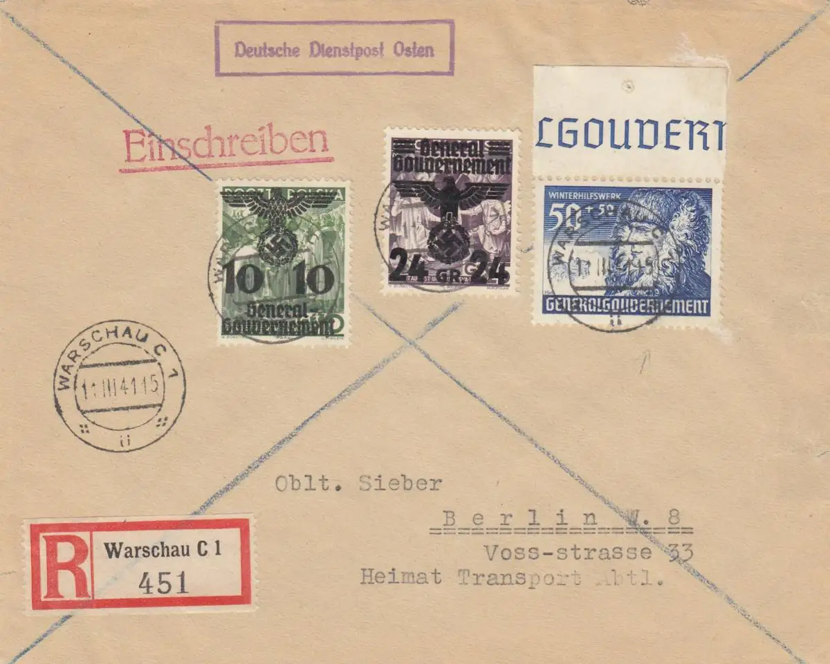 GG: MiF pour lettre recommandée Varsovie à Berlin