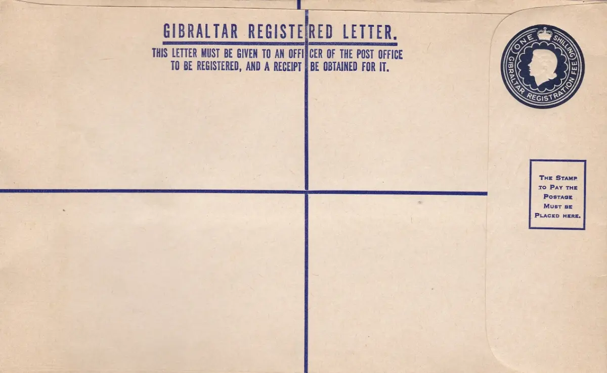 GIBRALTAR, Einschreiben Königin Elizabeth 1 sh. NEU Maße 20 x 12,5 cm AM Los 90