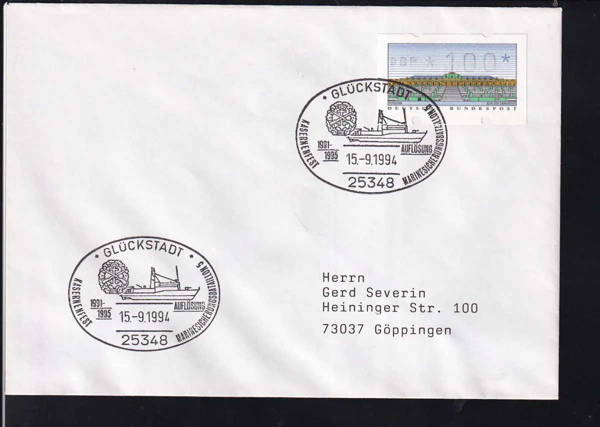 GLÜCKSTADT 252348 KASERNENFEST MARINESICHERUNGSBATALLION 5 19910-1995 AUFLÖSUNG 15.9.1994 auzf Brief