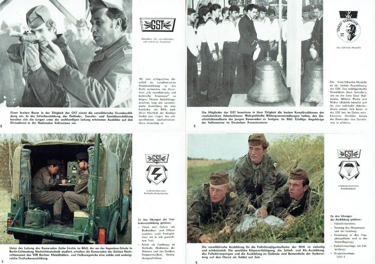 sehr guter Zustand, geringe Gebrauchs- und Alterungsspuren: Mappe geringfügig abgenutzt und schwach schmutzfingrig - Tafeln sauber und ordentlich, Bildmappe mit 17 Bildern aus dem Alltag der Gesellschaft für Sport und Technik Themen, Wissen und Übungen zu den Abzeichen: - Dinststellungsabzeichen - Mehrkampfabzeichen - Segelschulschiff - Massenschießabzeichen - Motorsport-Leistungsabzeichen - Segelflieger-Leistungsabzeichen - Laufbahnabzeichen: Taucher - Laufbahnabzeichen: Maritime Laufbahnen (Marine) - Lausbahn-Abzeichen: Flugzugführer-Ingenieur - Laufbahnabzeichen: Tastfunker/Fernschreiber - u. a, Softcover, ca. 15 x 21, 16 Bildtafeln in original Umschlag (komplett)