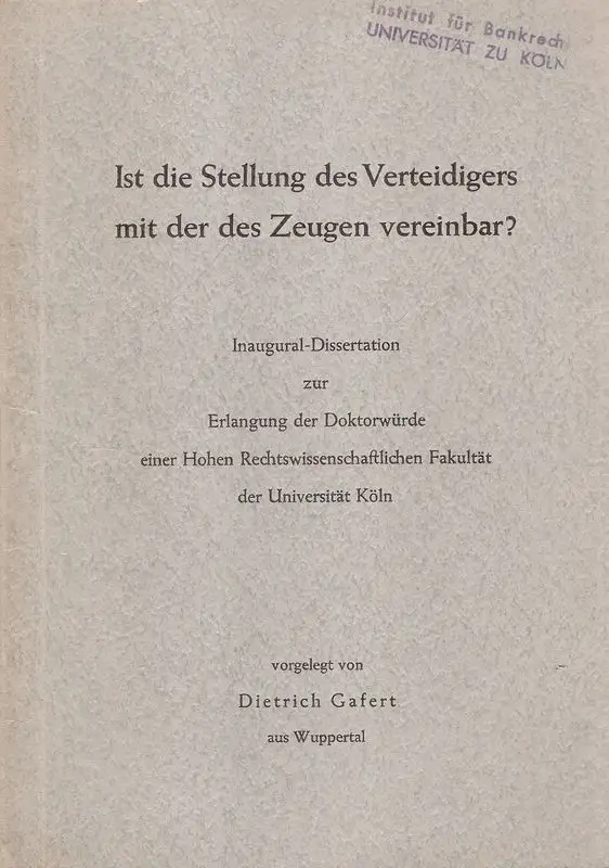 Gafert, Dietrich: Ist die Stellung des Verteidigers mit der des Zeugen vereinbar? (Dissertation).