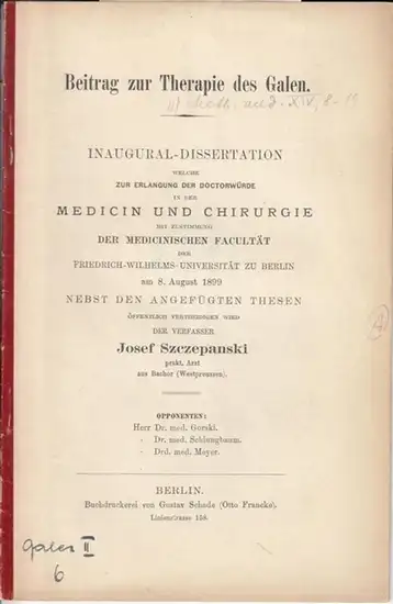 Galenus / Galenos / Galen. - Szczepanski, Josef: Beitrag zur Therapie des Galen.