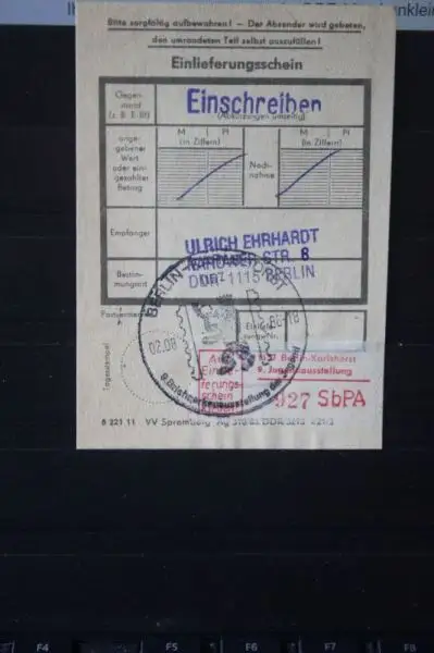 Ganzsache 9. Jugendausstellung Berlin-Karlshorst 1986 mit Sonder R-Zettel