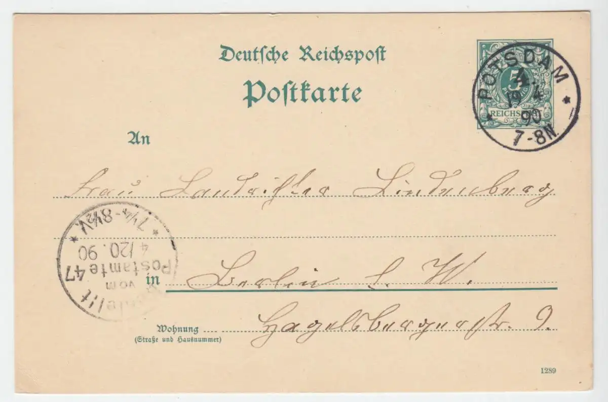 Ganzsache, Michel-Nr. DR P20 Absender: unbenannt Empfänger: Privatperson in BerlinPorto: 005 Nebenstempel: Ankunftstempel, Bestellt vom Postamte 47 Der