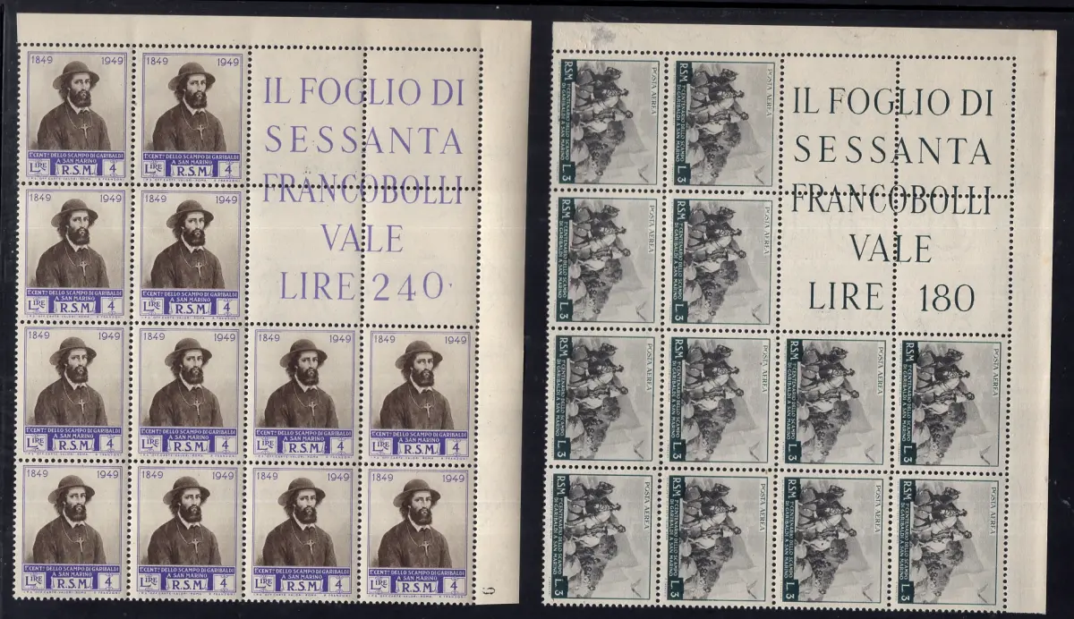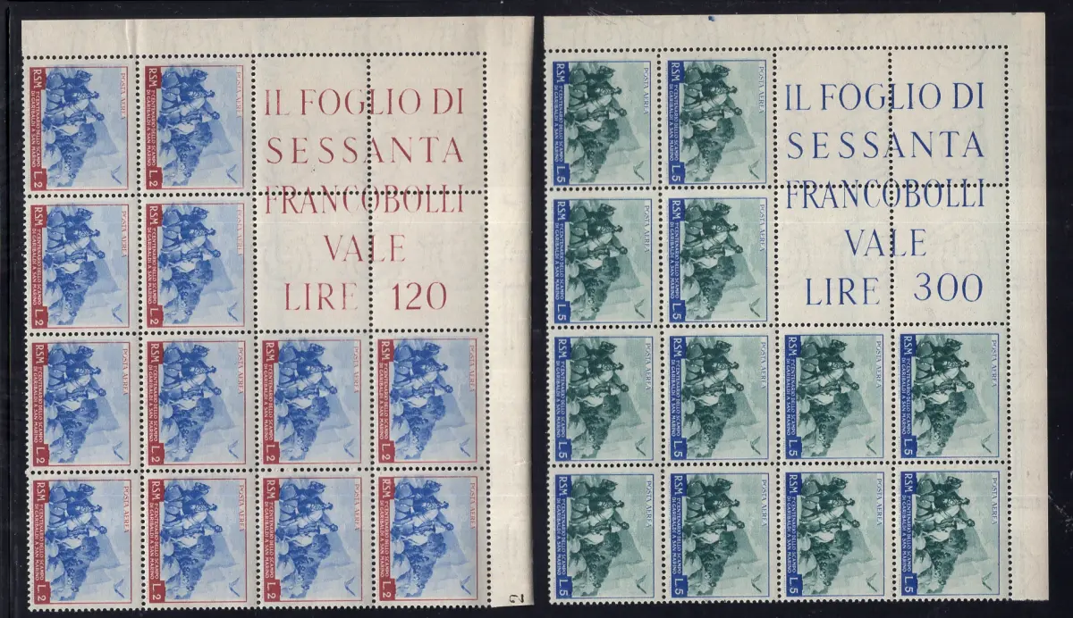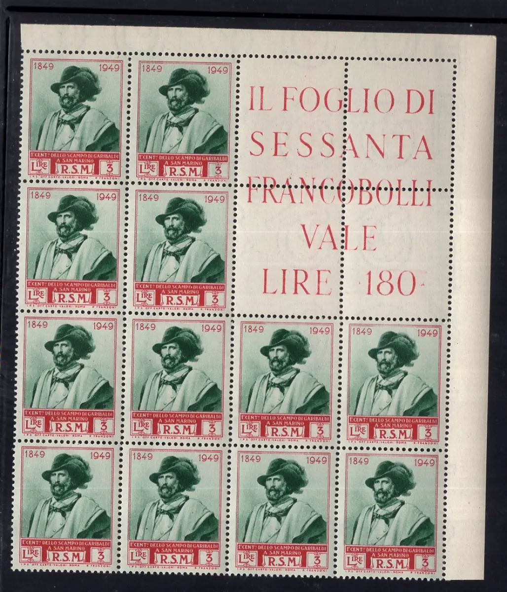 postfrisch ** - Garibaldi 1949 Nr. 358/361 + Luftpost Nr. 77/79 die Siebenwertserie im Block von 12 Exemplaren alle inklusive Eckblock mit Bogenbeschriftungen - Seltenes Set in sehr gutem Erhaltungszustand - Eckblockkatalog Nr. 13/16 + PA 1/3 Euro 400 - Nicht auffindbar, um die Sammlung zu spezialisieren Cod. 987/17