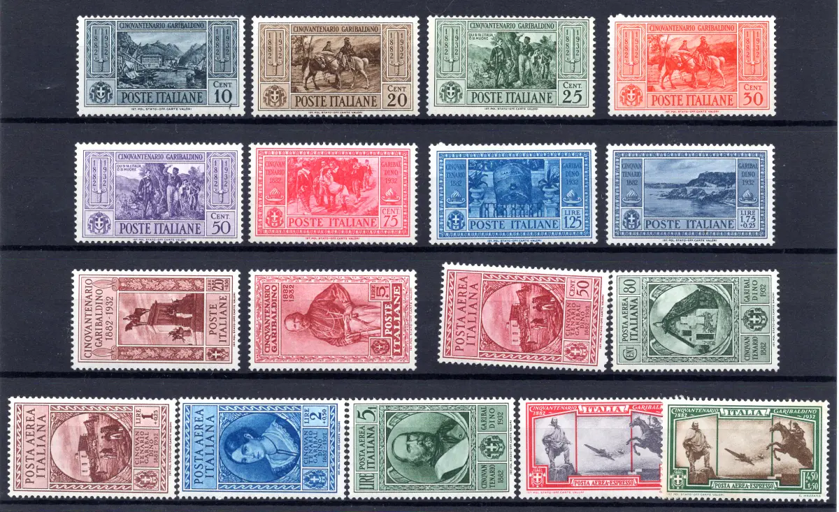 Vollgummi - MNH - Garibaldi Nr. 315/324 + PA Nr.32/38 Komplettserie in Luxusqualität für Frische und Zentrierung - Gebraucht - Kat. euro 725 Cod. 43/16