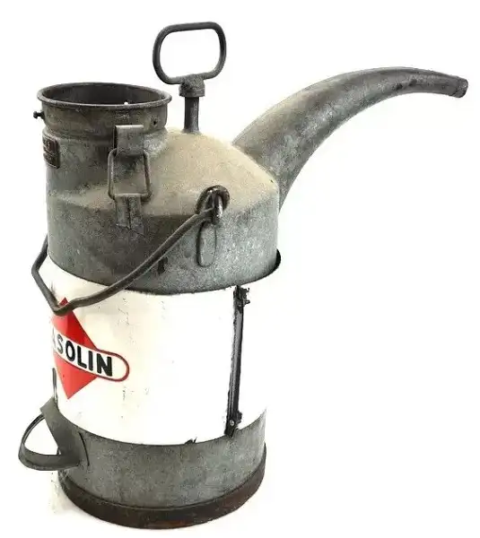 Gasolin Zweitaktmischung Benzinkanne 1960 mit Emaillering (6869)