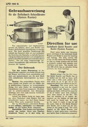 Gebrauchsanweisung für die Eschebach-Schnellbrater (System Kuntze).
