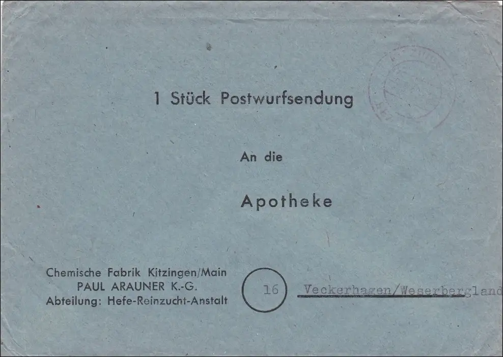 Frais payés: Kitzingen/Main 1942 envoi de lots de courrier à Veckerhagen/Weserbergland