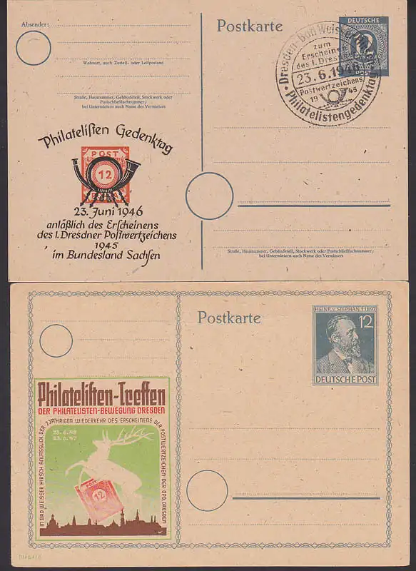Gedenktag zur Erscheinung der Potschta, 1. PWZ nach 1945 in Deutschland auf GA mit privatem Zudruck