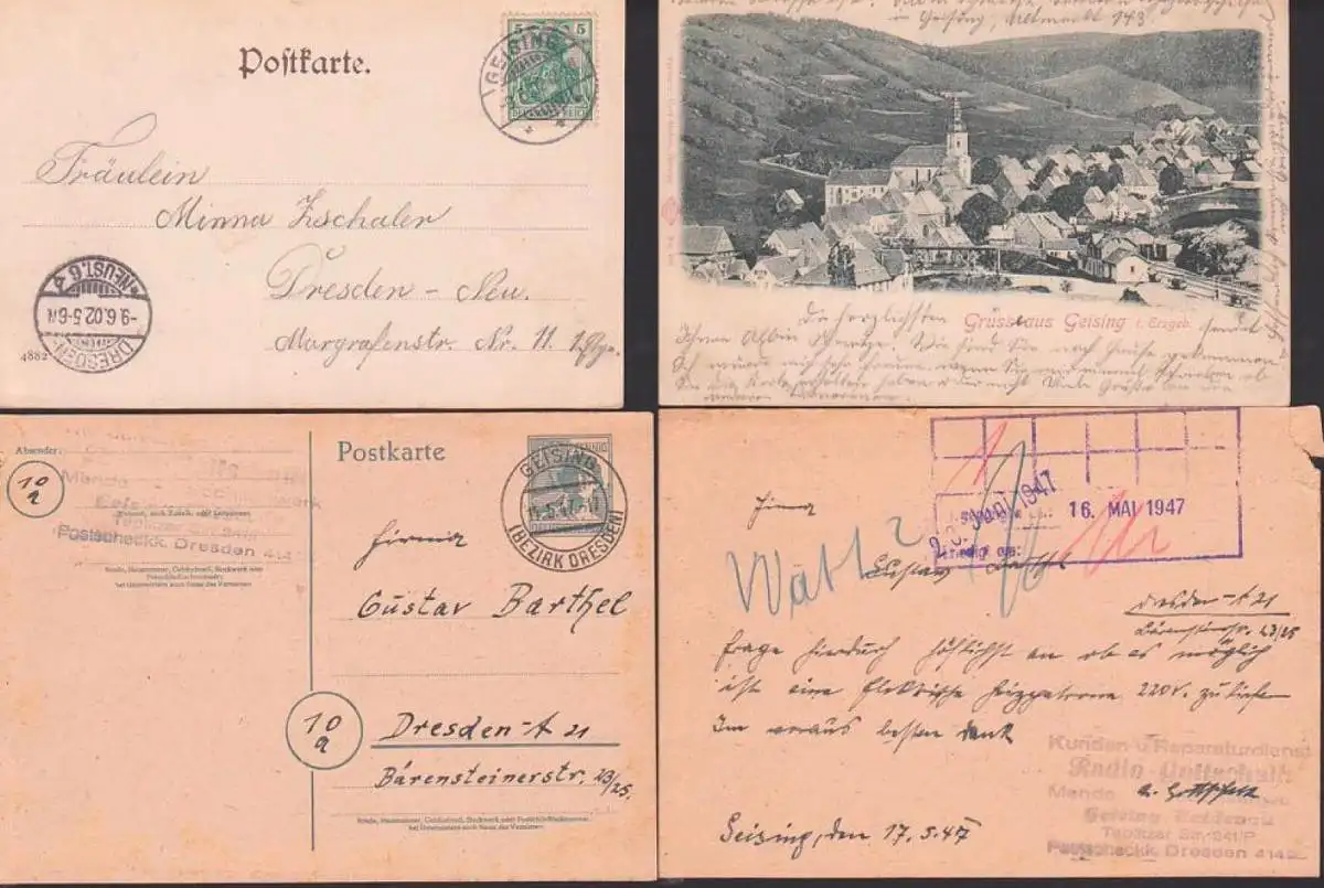Geising Ak mit OSt. 9.6.1902 AK mit Ortsansicht, dazuKte OSt. Geising (Bezirk Dresden) 1957
