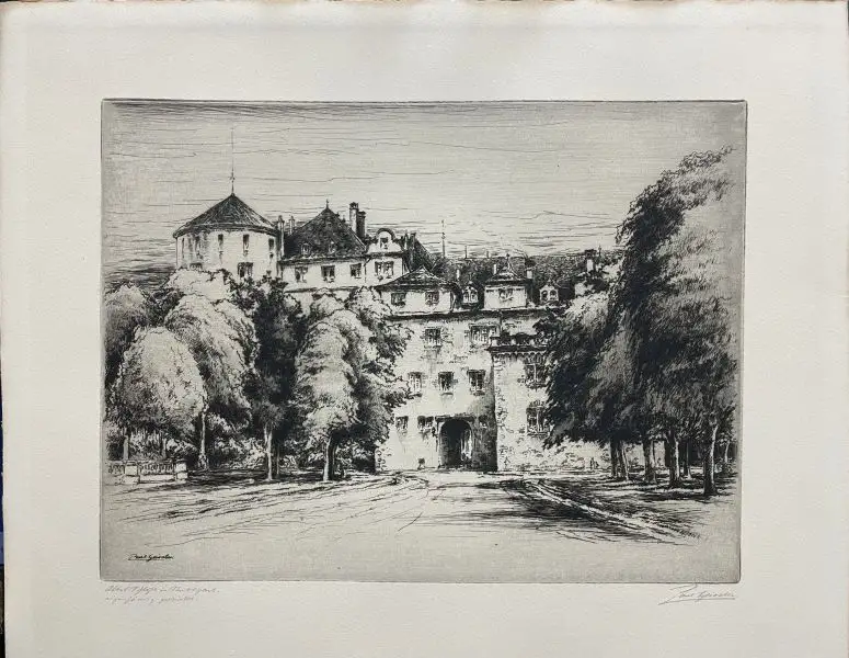 Geissler, Paul (1881 Erfurt - 1965 Garmisch-Partenkirchen),, Altes Schloß in Stuttgart. Radierung