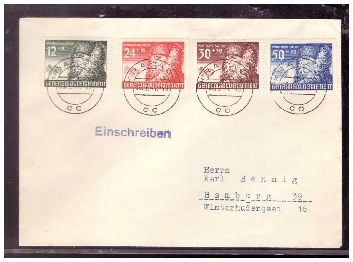 Dt.- Reich (020158) GG WK II Satzbrief MNR 59/ 62 Winterhilfe, gestempelt mit Tagesstempel Krakau 1941