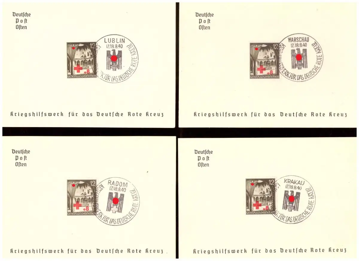 Dt.- Reich (020162) GG WK II 4 Gedenkblätter Deutsche Post Osten, Rotes Kreuz, Warschau, Lublin, Radom, Krakau