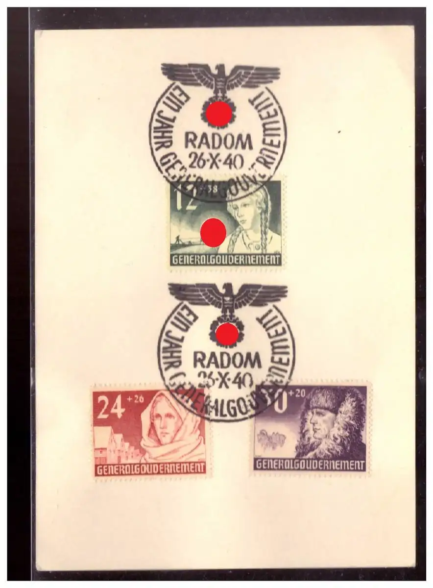 GG (020794) WKII Gedenkblatt mit MNR 56/ 58 mit Sonderstempel 6, Ein Jahr GG, Random 26.10.1940